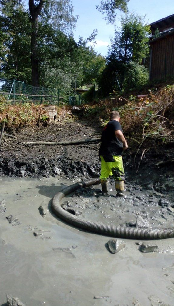 Weiter können wir mit einem Fuhrpark von 12 Saug- und Spülfahrzeugen auch große Mengen an abzusaugendem Material bewältigen, beispielsweise nach einem Unfall oder einer Havarie.